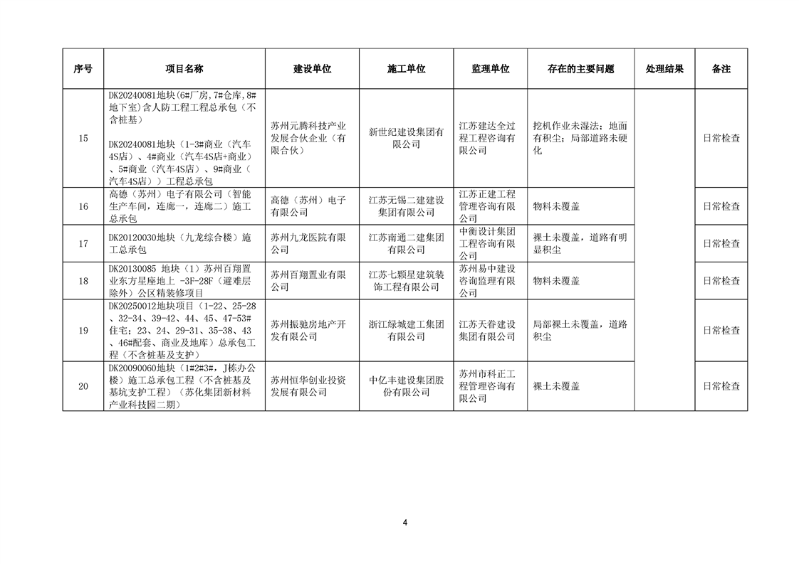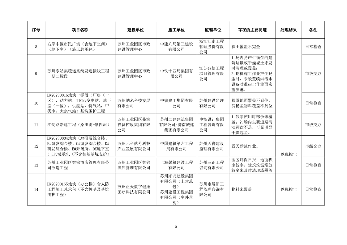 園區質安站關于2025年7月份園區建筑工地揚塵防治不良信息的通報