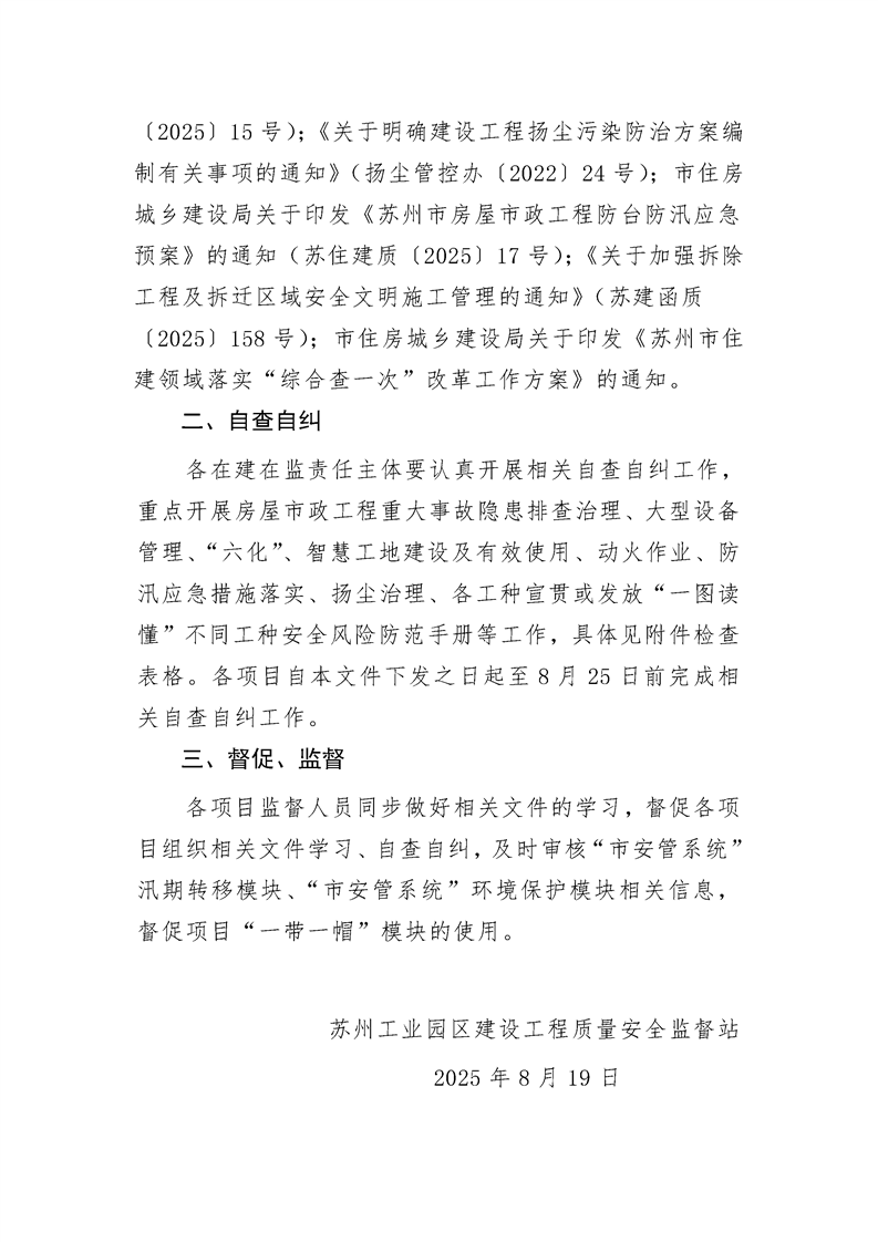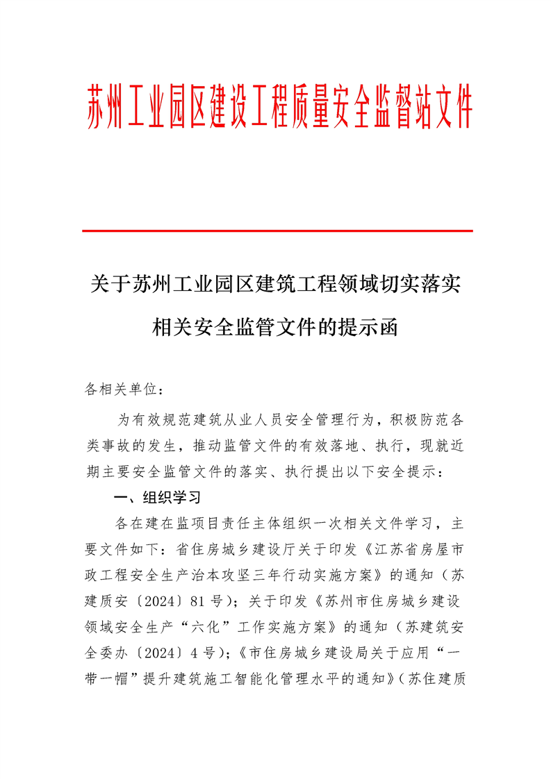 關于蘇州工業園區建筑工程領域切實落實相關安全監管文件的提示函