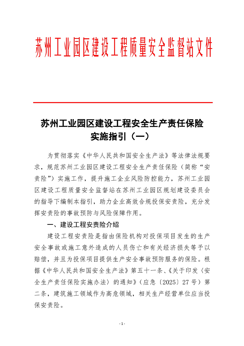 蘇州工業(yè)園區(qū)建設(shè)工程安全生產(chǎn)責(zé)任保險(xiǎn)實(shí)施指引(一)