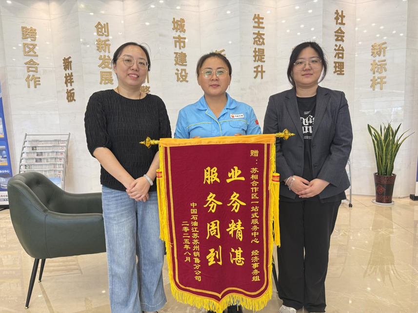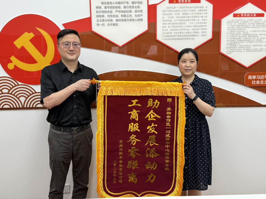 近日,蘇相合作區(qū)一站式服務中心辦事大廳內(nèi)溫情滿溢,轄區(qū)企業(yè)蘇州科陽半導體有限公司、中國石油江蘇蘇州銷售分公司、蘇州華天財務咨詢有限公司的相關負責人陸續(xù)到訪,分別送上繡有暖心話語的錦旗,以真摯感謝為中心的助企服務寫下生動注腳。