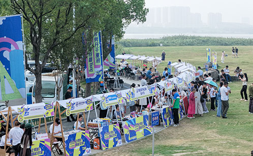區(qū)內(nèi)高校、企業(yè)帶來非遺作品、輕食飲品、休閑文旅、運(yùn)動(dòng)裝備、文創(chuàng)周邊等湖畔市集攤位吸引了不少市民停留駐足、拍照打卡。