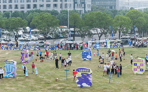 在陸上游戲挑戰(zhàn)區(qū),市民們積極在百步穿楊(投壺)、蘇超踢毽子、蘇超九宮格等專區(qū)參與互動(dòng),領(lǐng)取精美禮品,盡情享受運(yùn)動(dòng)帶來的樂趣。