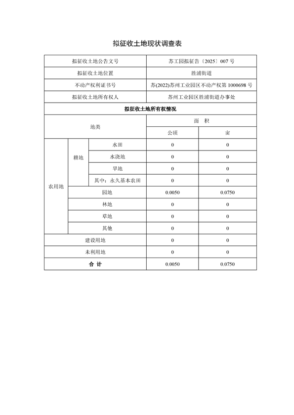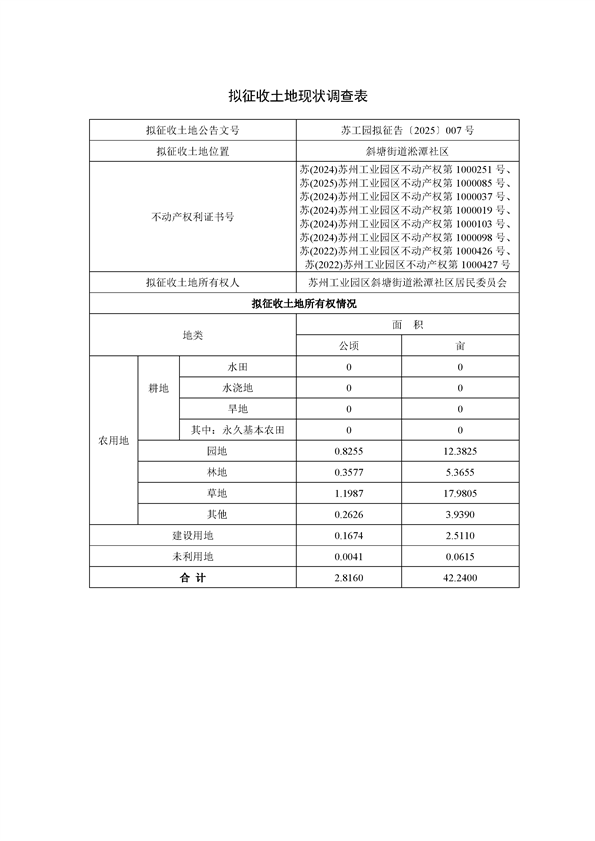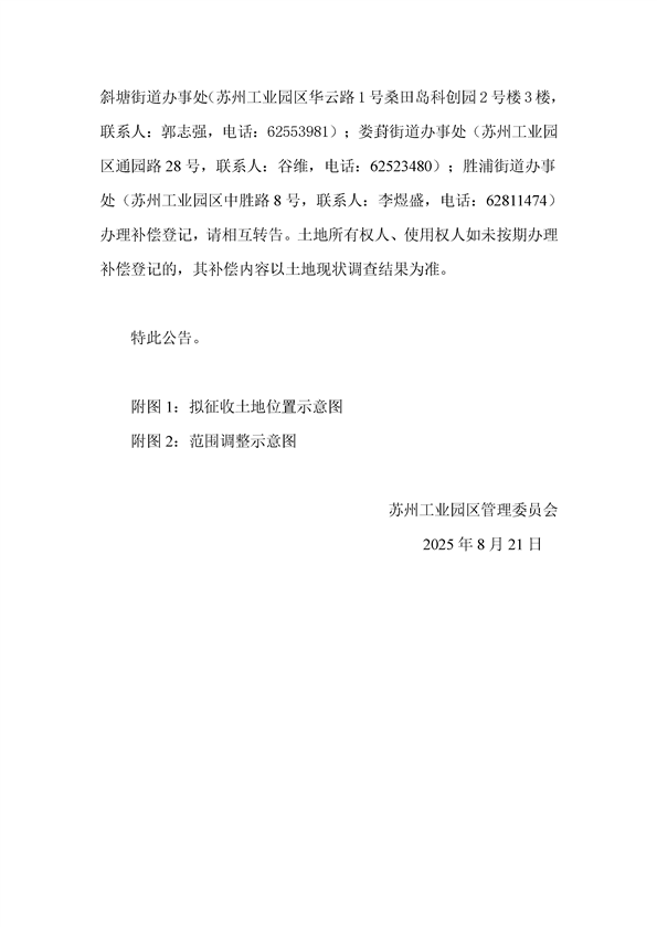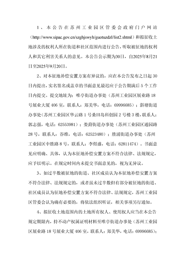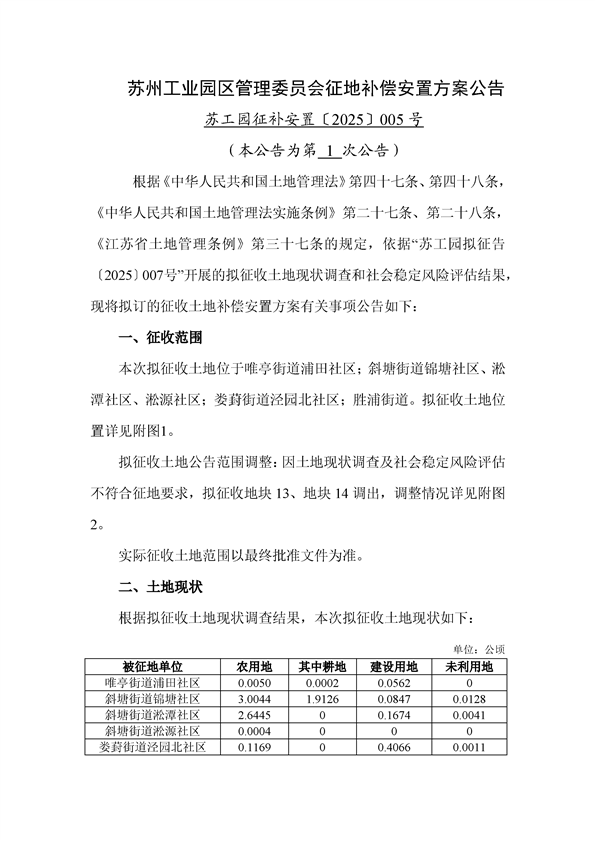 蘇州工業園區2025年度第8批次城市建設用地--蘇州工業園區管理委員會征地補償安置方案公告(蘇工園征補安置〔2025〕005號)