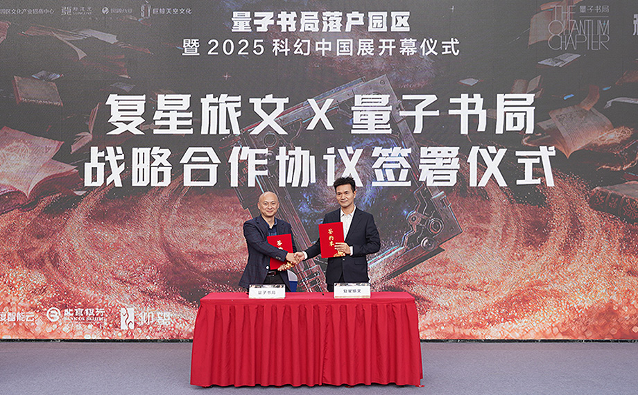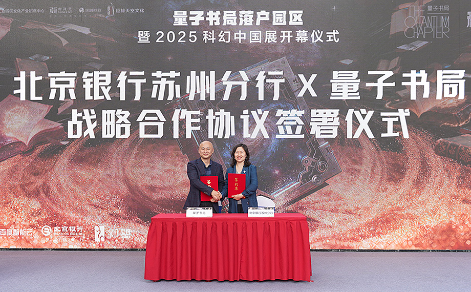 活動現場,王晉康、劉慈欣、蘇學軍、李易謙等作家受聘量子書局科學領閱官。量子書局與復星旅文、北京銀行簽署戰略合作協議,將合力推動金融與文化的深度融合,就高品質研學、青少年科幻主題活動、科幻主題線下場景體驗等開展深入合作。