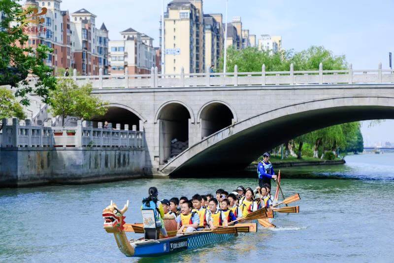 蘇州國際友縁ドラゴンボートチーム(Suzhou International Friendship Dragon Boat Team)は2021年に設立され、フランス、南アフリカ、インドネシアなど複數の國からの留學生で構成され、すでに何度も金鶏湖ドラゴンボートレースに登場した。同チームは単なる參加チームだけではなく、さらに中外の文化交流の使者でもある。彼らはドラゴンボートを情感の絆として、世界に中國伝統文化の魅力を伝え、中國にも世界中の多様な文化の活気を感じさせる。