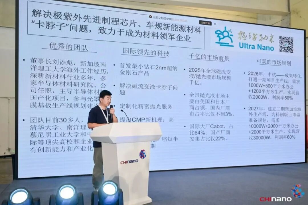 蘇州極鉆納米科技有限責(zé)任公司CEO劉添彪,介紹了《超納金剛石三代半加半導(dǎo)體精拋材料和算法產(chǎn)業(yè)化》。超納金剛石具有量子特性的超小尺寸效應(yīng),比普通金剛石更硬,導(dǎo)熱性、光、聲、電、磁、負(fù)載、生物相容性,可應(yīng)用在精密拋光、磁流變、納米機器人、核電池等領(lǐng)域。該項目聚焦于超納金剛石材料的宏量生產(chǎn),粒徑晶型表面調(diào)控,相比較傳統(tǒng)的爆轟法破碎法,其超納金剛石尺寸更小一個數(shù)量級,更凸顯量子特性。作為超納材料高新技術(shù)的先鋒,該公司以半導(dǎo)體產(chǎn)品與車規(guī)新能源材料雙輪驅(qū)動,構(gòu)建起以研發(fā)為主導(dǎo)、生產(chǎn)、銷售、進出口為一體的產(chǎn)學(xué)研結(jié)合新星企業(yè),專注于硬科技、卡脖子、國產(chǎn)替代的戰(zhàn)略布局。