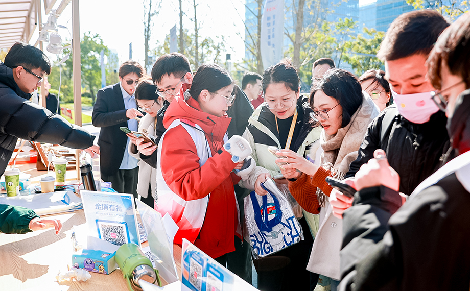 最聚人氣的當屬蘇式美食區(qū),剛出爐的蟹殼黃香氣四溢,海棠糕表面的糖霜泛著光澤,攤位前早已排起長龍。市民張女士在新建元數(shù)智灣工作,她熟稔地打開數(shù)字金雞湖APP,掃描商戶展示的數(shù)幣聚合支付碼,僅需幾秒便完成付款。“以前總擔心數(shù)幣支付操作復雜,現(xiàn)在一碼通掃太方便了。”她手握熱乎的點心笑著分享,“剛剛還參與了數(shù)幣抽獎,抽中了‘滿50減20’的優(yōu)惠券,等會兒再去別的攤位逛逛。”