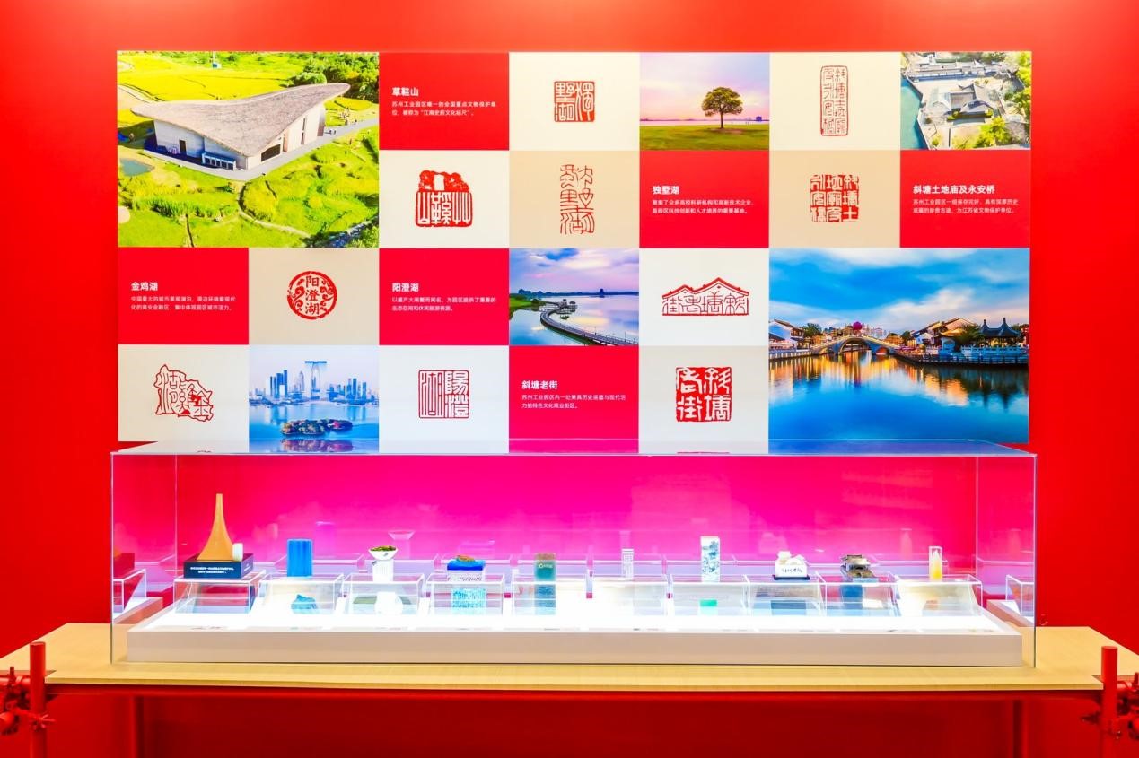 在“印記園區(qū)”部分,94枚全新創(chuàng)作的印章形成“領(lǐng)航擘畫(huà)”“志合山海”“吳風(fēng)湖韻”“勇立潮頭”“盛世江南”五大篇章,立體勾勒了園區(qū)的驚艷蝶變。其中,《發(fā)揮試驗(yàn)示范作用》印章以DNA雙螺旋結(jié)構(gòu)象征生物醫(yī)藥、芯片造型代表人工智能,并結(jié)合碳納米六邊形的造型,將園區(qū)三大特色產(chǎn)業(yè)精準(zhǔn)呈現(xiàn);《鄰里中心》印章通過(guò)可轉(zhuǎn)動(dòng)的設(shè)計(jì),生動(dòng)詮釋了社區(qū)共生、活力多元的園區(qū)生活理念;《金雞湖》作品中澄澈水體與印石相映成趣,成為生態(tài)園區(qū)最詩(shī)意的見(jiàn)證。