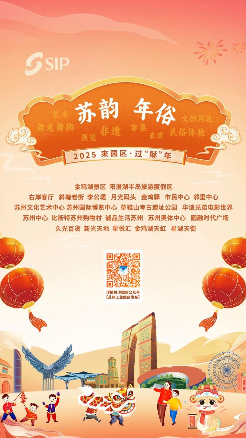 來園區,過“酥”年!2025年將迎來首個“非遺版”春節,蘇州工業園區聚焦“商、旅、文”推出“來園區·過‘酥’年”系列活動,圍繞四大主題,“嗨購樂享”“惠游暢玩”“蘇韻年俗”“悅宿歡娛”,開展精彩紛呈的特色活動,營造濃厚熱烈的節日氛圍,助力游客市民惠游園區,全方位展示園區蘇韻年味,進一步推動文旅消費市場蓬勃發展。第三期“蘇韻年俗”攻略趕快收藏吧!
