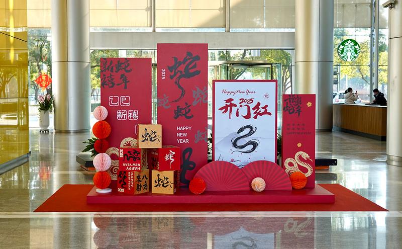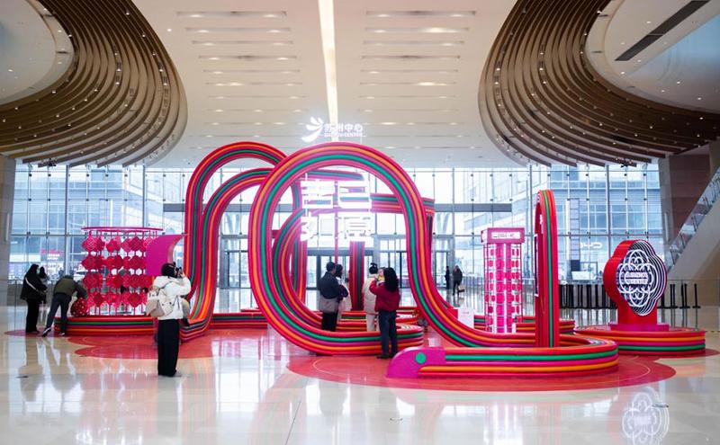 園區各大商圈內精心布置的蛇年雕塑、藝術展覽等年味裝扮,將傳統年味與現代設計融合,呈現出全新的藝術盛宴。