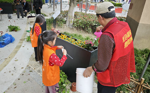 淞源社區(qū)友鄰公園自建成以來,便成為居民日常散步、親子游樂和鄰里社交的熱門場(chǎng)所。然而,園內(nèi)綠植品質(zhì)提升的問題一直備受居民關(guān)注。圍繞居民需求,社區(qū)迅速行動(dòng),號(hào)召紅色管家志愿服務(wù)隊(duì)與居民共同栽種常春藤、月季等花木100余株,并在友鄰公園特別設(shè)置綠植成長(zhǎng)區(qū),鼓勵(lì)居民認(rèn)領(lǐng)養(yǎng)護(hù),實(shí)施共植共管模式,讓居民在基層治理中實(shí)現(xiàn)從“旁觀者”到“參與者”的角色轉(zhuǎn)變。