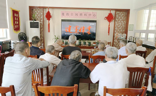 為聚焦長者情感陪伴與價值認同需求,蓮韻社區日間照料中心精心策劃“時光影院”活動,組織社區長者共同觀賞《建黨偉業》等經典影片,通過沉浸式觀影喚醒集體記憶,搭建起穿越歲月的“記憶長廊”;特別邀請社區老黨員代表,深情講述自己的入黨故事,帶領大家重溫那段激情燃燒的歲月,讓歷史褶皺中的溫暖片段成為“時光膠囊”。活動既消融了現代社會的“情感孤島”,更讓銀齡群體的智慧沉淀轉化為社區精神財富,這種深度情感聯結推動為老服務從物質關懷邁向精神共筑新階段,為精塑“溫情相攜”服務格局點亮人文燈塔。
