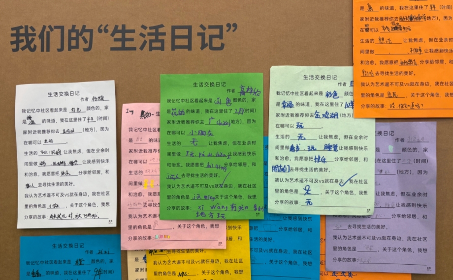 “我記憶中的社區(qū)看起來是彩色的,家是幸福的味道。”這是展板上一位居民寫下的“生活交換日記”。45份生活日記,45種對(duì)于社區(qū)生活的不同見解,正如居民代表史保利提到,“這不僅僅是一場(chǎng)藝術(shù)活動(dòng),更是一次走進(jìn)自己、走進(jìn)鄰里、走進(jìn)社區(qū)的奇妙的旅程。”本次“藝術(shù)畫像計(jì)劃”突破舊有場(chǎng)館界限,深入社區(qū)肌理,成為每一個(gè)普通人參與公眾表達(dá)的媒介,讓居民們從“被看見”中獲得歸屬感,從日常分享中產(chǎn)生共鳴,真正發(fā)自內(nèi)心的認(rèn)同“藝術(shù)就在身邊”。