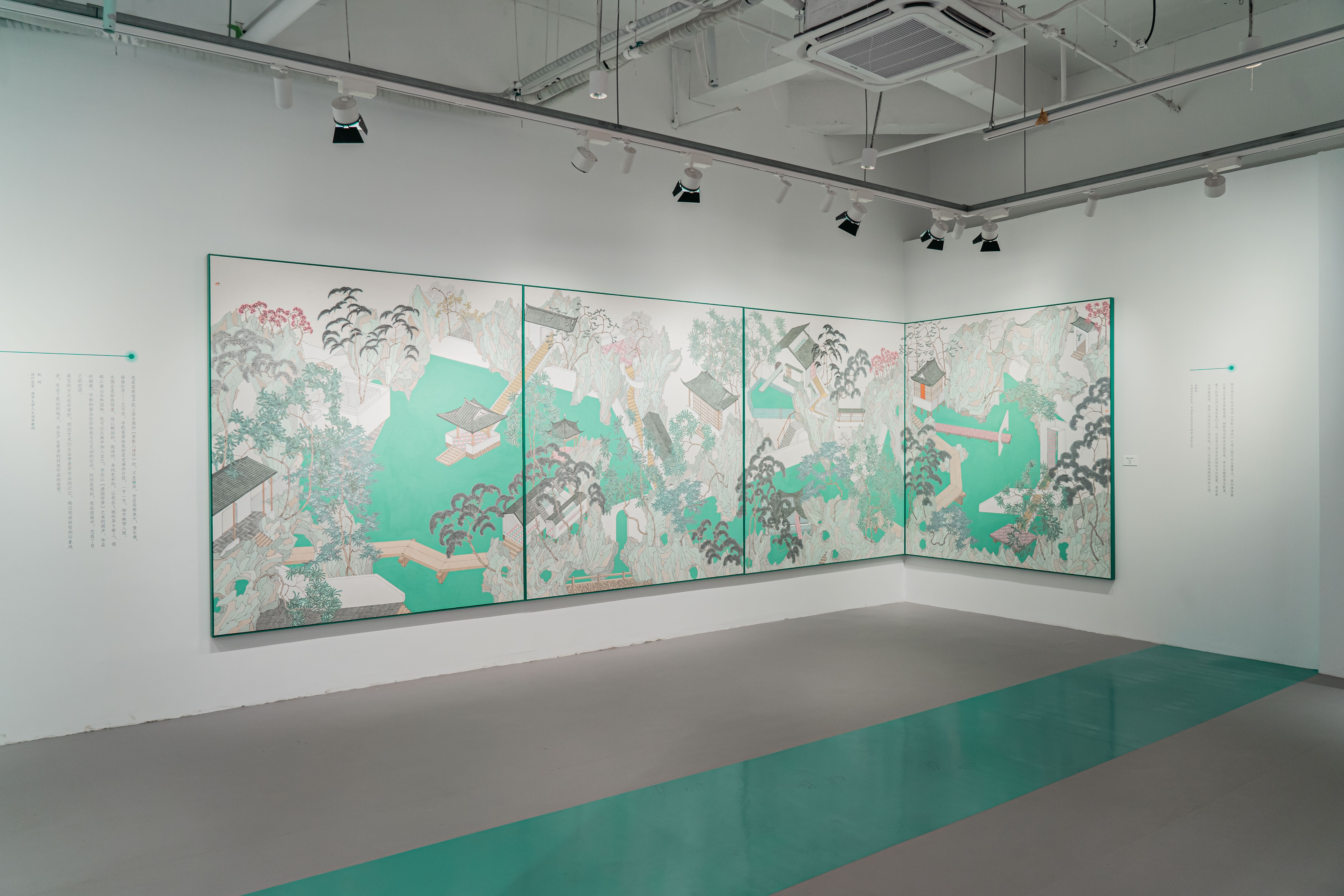 當(dāng)青綠山水遇見現(xiàn)代幾何,當(dāng)亭臺廊道融入數(shù)字光影,一場名為“后園林圖景”的藝術(shù)展正重構(gòu)蘇州園林文化的基因,點(diǎn)亮“金秋·三湖嘉年華”的藝術(shù)之光。近日,“后園林圖景:姚永強(qiáng)”藝術(shù)展在蘇州城市藝術(shù)客廳開幕。展覽以藝術(shù)家姚永強(qiáng)耗時(shí)半年創(chuàng)作的4屏巨作《翠影入清懷》為核心,通過40余件跨界文創(chuàng)與動態(tài)影像裝置,完成對傳統(tǒng)園林的當(dāng)代解碼。