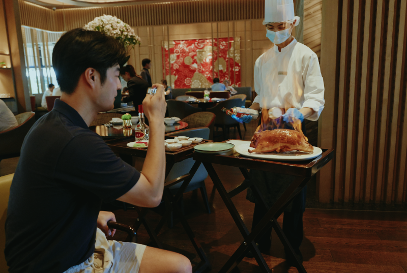 活動精準把握韓國游客的消費偏好,針對性推出涵蓋游購娛吃住行的全鏈條方案。在場景打造上,園區巧妙融合傳統與現代元素,三大主題路線各具特色:“旗袍落日”路線將蘇式園林與高空摩天輪完美結合,讓游客在古典園林中體驗湯唯同款旗袍妝造后,又能登上蘇州之眼摩天輪欣賞落日余暉;“江南輕奢”路線則創新推出五糧液烤鴨等跨界美食,搭配金雞湖帆船體驗,讓傳統美食煥發新生機;“親子環湖”路線整合郵輪酒店、萌寵樂園等親子資源,打造全齡友好的度假體驗。