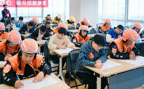 在快遞物流組中,選手們首先完成了對物流標準、安全規范及信息化系統應用等內容的理論考試。隨后的實操環節需在限定時間內完成快遞分揀與規范打包任務,選手們動作嫻熟,分揀迅速準確,能按配送區域清晰標注分類,打包時更是細致入微,氣泡膜包裹規范,邊角保護到位,體現出高度的職業敏感性和實操水平。外賣配送組的比賽緊貼實際工作流程,理論部分涵蓋交通法規、服務規范、應急處理等必備知識;實操環節則需選手們在教室內模擬完成從接單、核對餐品、異常處理到客戶溝通的全過程。參賽的外賣員在核對環節一絲不茍,處理異常迅速果斷,溝通中語氣禮貌、表達清晰,表現出良好的服務意識和問題解決能力。安全排查組重點考察選手對安全生產法規與隱患排查知識的理解及應用能力。理論考試結束后,選手們進入實操考評。面對模擬場景中的電氣火災、觸電事故、預設隱患等緊急情況,選手們反應迅速、步驟清晰,準確識別現場存在的多個安全隱患提出預防建議,體現出安全員在日常巡查和突發應對中的職業價值。康養護理組圍繞老年人日常照護與應急處理,設置了全面考評內容。理論考試聚焦基礎護理知識、老年疾病應對與溝通技巧等方面;實操環節則包括測血壓、量血糖、協助轉移、康復指導與突發情況處理。選手們在護理操作中規范細致,溝通中語氣溫和、耐心十足,充分展現出康養員的責任感與專業水平。