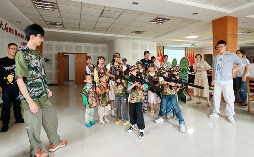 為筑牢青少年國防教育根基,讓愛國情懷與強國意識融入成長日常,淞潭社區精心策劃“童心系國防,共筑強國夢”教育活動。活動以莊嚴肅穆的“云升旗”儀式拉開帷幕,退役軍人志愿者結合屏幕中的畫面,生動講解著國旗護衛隊鏗鏘有力的正步姿態背后的訓練故事,以及五星紅旗冉冉升起所承載的國家尊嚴與民族精神。講解結束后,社區進一步設計系列沉浸式體驗環節,讓知識從“聽進去”變為“動起來”。“國旗設計者是誰?”“輕武器有哪些分類?”等知識問答迅速調動了親子家庭的積極性,大家圍坐一起討論、踴躍舉手搶答,在互動中夯實國防知識基礎;“小小神槍手”模擬體驗環節,孩子們在志愿者的耐心指導下,認真學習持槍姿勢、瞄準技巧,完成一次次專注的模擬射擊;火箭模型組裝環節中,家長與孩子默契配合,對照說明書拆解零件、精準拼接,待組裝完成后,隨著“3、2、1,發射!”的響亮指令,小火箭載著孩子們的歡呼直沖天際。活動不僅讓青少年直觀感受到國防科技的獨特魅力,更讓愛國的種子在心底悄然扎根、慢慢發芽。