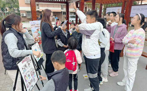 活動伊始,現場居民便被一道獨特的風景線所吸引——社區法治長廊中正在展出的“社區法治漫畫創想賽”優秀作品。孩子們以天馬行空的想象和充滿童真的畫筆,將抽象的法律知識及條文轉化為一幅幅生動有趣的漫畫,引得眾多居民駐足欣賞。這些畫作不僅裝點了社區空間,更在潛移默化中播撒了法治的種子,為接下來即將開展的知識競賽營造出濃厚的法治氛圍。