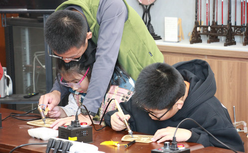在“檀香扇燙花親子共創活動”中,家長與孩子一同走進蘇州如意檀香扇工坊,沉浸式體驗非遺文化的魅力。孩子們欣賞大師作品、觀摩燙花工藝演示、了解傳統制扇流程,并在老師的指導下親手參與燙花創作。活動將非遺文化融入親子互動,既增強了孩子們對傳統文化的認同感,也促進了親子間的情感交流與共創樂趣。