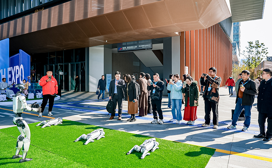 步入市集,婉轉柔美的蘇州評彈如清泉般流淌,瞬間將人帶入江南雅境。非遺展區內,蘇扇、緙絲、蘇繡等傳統工藝品在陽光下流轉生輝,市民紛紛駐足細賞、咨詢挑選。而在數字潮玩區,科技感與未來感撲面而來,智能機器人揮舞雙臂與觀眾互動,憨態可掬的機器狗隨著指令完成轉圈、跳躍等高難度動作,盡顯科技魅力,引得圍觀群眾陣陣喝彩。