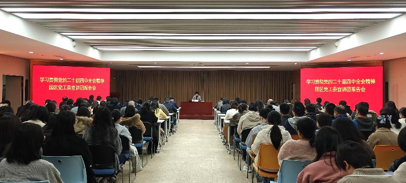 12月1日上午,學習貫徹黨的二十屆四中全會精神園區(qū)黨工委宣講團報告會在投控公司舉行,園區(qū)黨工委宣講團成員、投控公司黨委書記、董事長錢曉紅作宣講報告。
