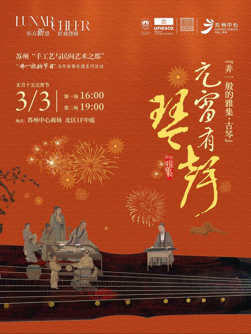 3月3日,蘇州中心商場北區(qū)一樓中庭將舉辦“非一般的雅集?古琴”專場。指尖輕撥,清音流轉(zhuǎn),邀市民與游客共赴一場滌蕩心靈的聽覺雅集。現(xiàn)場將奏響《賽馬》《梅花三弄》《上春山》等經(jīng)典曲目,共設(shè)兩場演出,分別于16:00、19:00開場。元宵佳節(jié),不妨移步蘇州中心,聽一曲清音入耳,共賞雅韻。