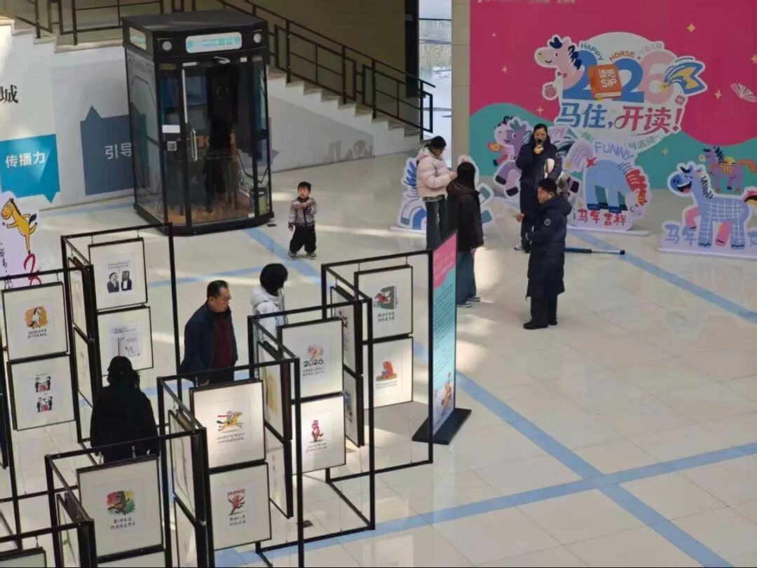 此外,蘇州知名漫畫家阿濤老師還為丙午新春獻上了一份特別賀禮。走進圖書館一樓大廳,百幅圍繞生肖“馬”創(chuàng)作的幽默漫畫,或諧音雙關(guān),或妙解成語,將生活的智慧融于方寸之間,讓讀者們仿佛踏入了一個充滿巧思與歡笑的“精神牧場”。
