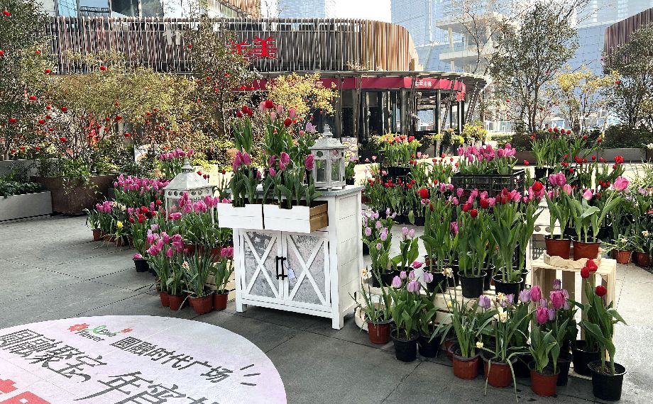 市民李小姐從餐廳出來就直奔花展,她說:“剛剛經過時就注意到‘上新’了年宵花展,紫的神秘,紅的熱烈,黃的燦爛,不僅為街區增添了活力,也讓春節的氛圍更濃郁了!現場還能用積分兌換限定郁金香,既幸運又特別喜慶!”