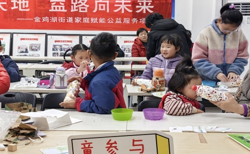 2月26日,最后一場議事會以“美好家園共營造”為主題,引導孩子們樹立環保意識,踐行低碳生活。活動現場,孩子們簽到后領取“議事員成長日記”,記錄自己的議事收獲與成長。“垃圾分分看”競速賽讓孩子們在趣味游戲中鞏固垃圾分類知識。議事環節中,孩子們圍繞“如何讓更多舊物再次循環利用”展開熱烈討論,從家庭舊物處理到社區舊物回收,孩子們的想法新穎又實用。手作環節里,孩子們化身“環保小達人”,動手制作可回收物改造小手工,紙袋變身實用紙巾桶、舊衣縫制成環保購物袋、塑料瓶改造成精致小花瓶,一件件創意滿滿的手工作品,讓孩子們真切體會到“變廢為寶”的樂趣,也將環保理念轉化為實際行動,以小手拉大手的方式,讓環保之風在社區傳遞。