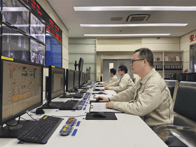 在這喜慶祥和的團(tuán)圓時(shí)刻,園區(qū)藍(lán)天燃?xì)鉄犭娪邢薰镜募厥覂?nèi)燈火通明,生產(chǎn)一線員工緊盯操作盤面,精準(zhǔn)調(diào)控機(jī)組;設(shè)備維護(hù)人員身著工裝、頭戴安全帽,細(xì)致檢查維護(hù)生產(chǎn)設(shè)備。