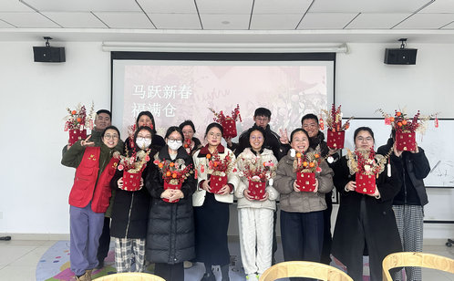 香堤社區的居民們則圍坐一堂,親手制作新春抱抱桶。銀柳、冬青、金葉在指尖交錯,紅果與福卡點綴其間,一桶桶繁花錦簇的作品,不僅承載著制作者的新年祈愿,更被送往快遞小哥、外賣騎手等新市民勞動者手中。那些平日里穿梭街巷、為他人送去便利的身影,在這一刻,也收到了一份屬于自己的、來自鄰里的手作祝福。