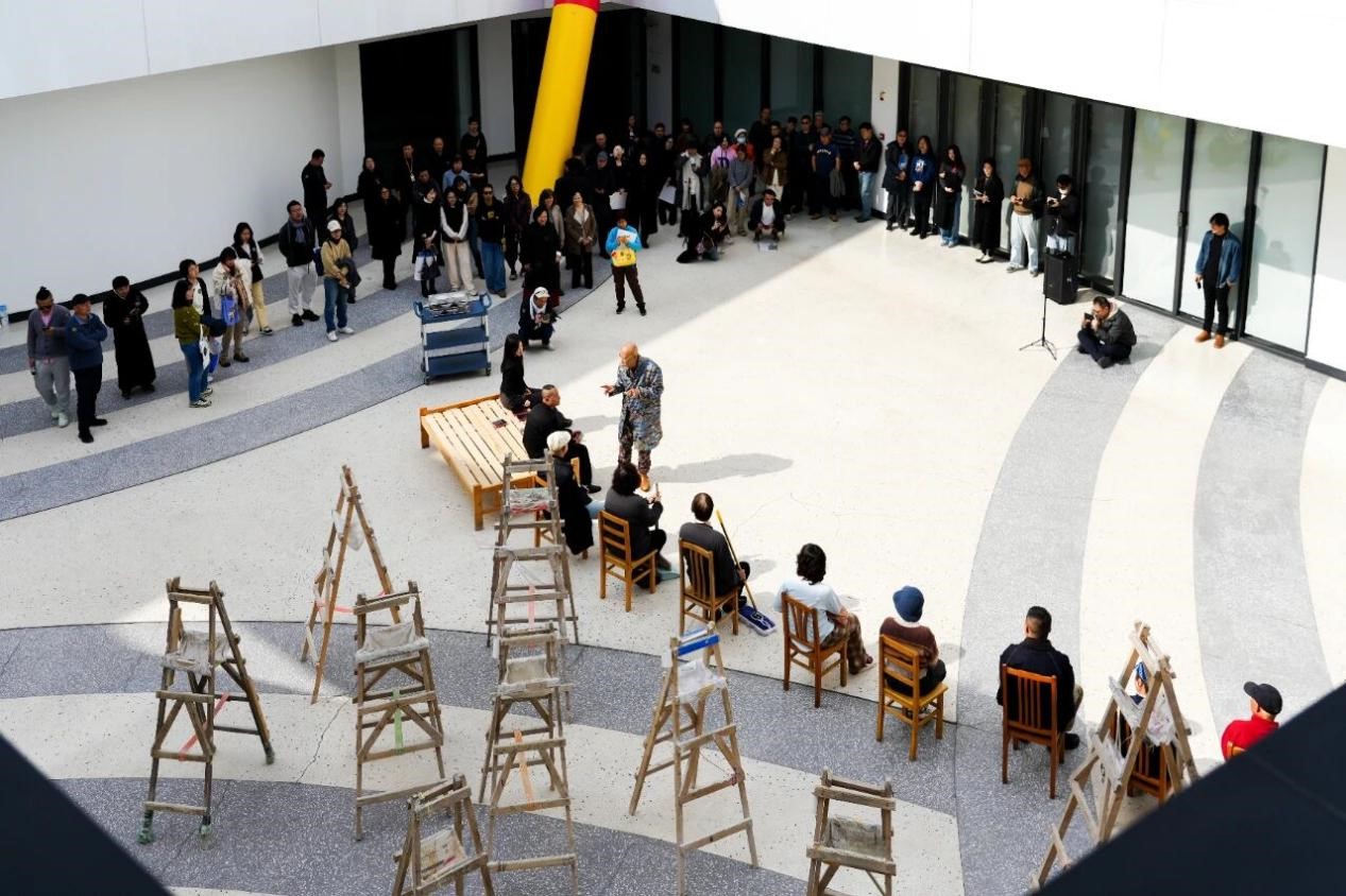 當天,楊重光還在宥愛美術館戶外中庭,帶來特別的一課《一場關于身份的現場實驗》。現場邀請觀眾親身參與,通過身體表達、材料運用、即興回應等形式,開展一場關于“身份”的集體藝術實驗,讓在場者感知藝術并非專屬特權,而是每個人與生俱來的能力。