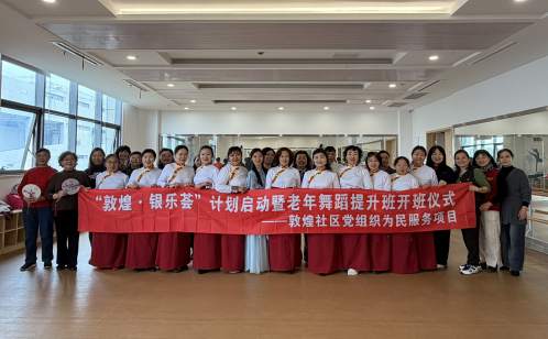 融鄰里之情,匯樂齡之薈。3月23日中午,“敦煌·銀樂薈”計劃首期課程——敦煌社區老年舞蹈提升班優雅開課。該課程面向轄區老年舞蹈團隊及愛好者,特邀專業舞蹈老師授課,以古典團扇舞為載體,幫助老年居民在舞動中鍛煉身體、陶冶情操、增進交流。