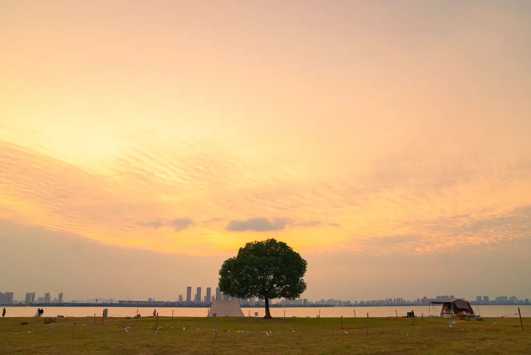 在白鷺園附近的半月灣,有一棵孤獨的“網(wǎng)紅”樹,靜靜佇立在獨墅湖東岸,樹下綠茵平鋪,是露營野餐的優(yōu)選之地,沐浴在陽光和春風(fēng)中,放空頭腦,享受愜意。