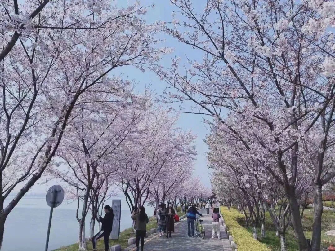 依金雞湖而建的湖濱公園,將旖旎湖景與韻味悠長的江南文化相融。漫步湖濱大道,一路的標(biāo)志性燈桿延展成優(yōu)美弧線,從北到南,香樟園、牡丹園、繡球園、歐月園依序鋪展,春日繁花次第綻放。湖風(fēng)輕拂,步道蜿蜒,自然景致與城市地標(biāo)相映成趣,一步一景皆是生機。走累了,可在湖邊驛站小憩,松弛感滿滿。