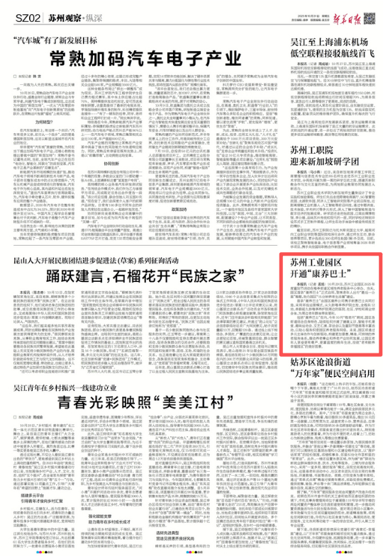 包括“康養(yǎng)巴士”在內(nèi),今年10月“敬老月”期間,園區(qū)各街道結(jié)合自身特色,陸續(xù)組織開(kāi)展了健康義診、智能手機(jī)課堂、趣味運(yùn)動(dòng)會(huì)、文藝匯演、茶話會(huì)以及重陽(yáng)節(jié)登高等豐富活動(dòng),以貼心服務(wù)織密園區(qū)養(yǎng)老服務(wù)網(wǎng)絡(luò)。未來(lái),園區(qū)將通過(guò)多元主體協(xié)作與創(chuàng)新驅(qū)動(dòng),構(gòu)建更加普惠、精準(zhǔn)、可持續(xù)的養(yǎng)老服務(wù)體系,推動(dòng)養(yǎng)老事業(yè)和養(yǎng)老產(chǎn)業(yè)協(xié)同發(fā)展,讓園區(qū)老年人享受更有尊嚴(yán)、更富溫度的晚年生活,繪就“老有頤養(yǎng)幸福園區(qū)”的美好圖景。