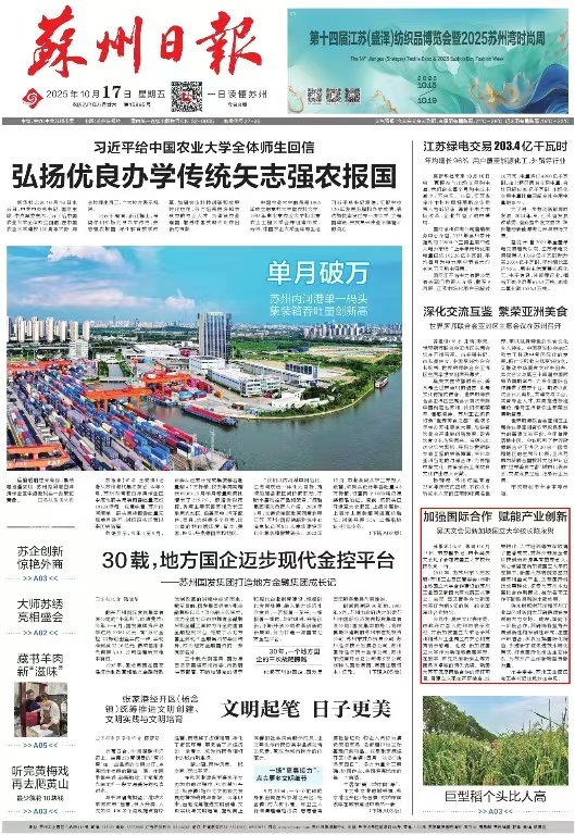 陳永財感謝蘇州和蘇州工業(yè)園區(qū)對新國大蘇研院建設(shè)發(fā)展的大力支持。他說,面向下一階段合作,蘇研院將堅持開展創(chuàng)新性和原創(chuàng)性研究,注重產(chǎn)研結(jié)合,積極發(fā)揮國際化特色,引進新加坡先進技術(shù)轉(zhuǎn)化模式,打造國際化創(chuàng)業(yè)生態(tài)體系,為蘇州產(chǎn)業(yè)創(chuàng)新轉(zhuǎn)型貢獻力量。