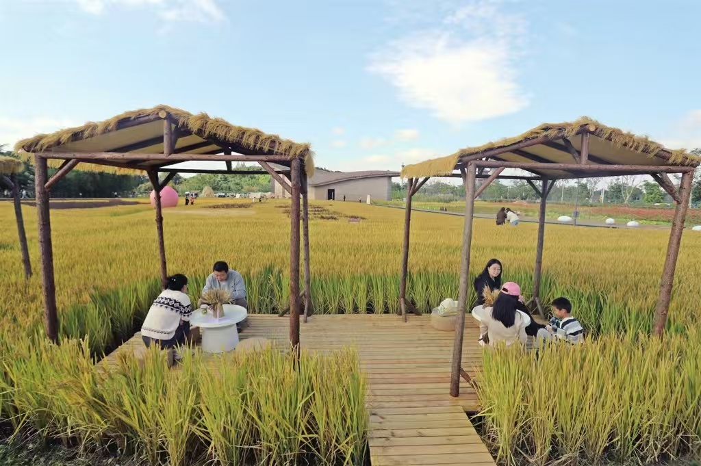 周末,眾多市民、游客來到蘇州工業(yè)園區(qū)草鞋山考古遺址公園游玩,體驗(yàn)稻作文化、感受江南文脈。