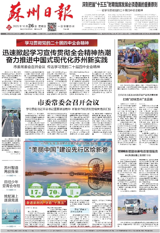 中國式現代化是人與自然和諧共生的現代化。蘇州市有關部門負責人表示,將以更堅實的生態基底、更智慧的治理手段、更創新的制度體系,沿著高質量發展之路穩步前行,為建設人與自然和諧共生的“美麗中國”貢獻蘇州智慧與蘇州樣板。