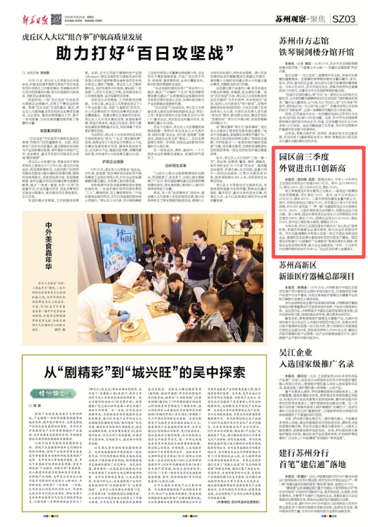 前三季度園區外貿主要有三大亮點:一是進出口規模創歷史同期最高,同比增長16.8%。其中,電子元件進出口3141億元,增長26.9%。二是外貿朋友圈含金量不斷上升。其中,對新加坡進出口增長73.8%,對東盟出口有4個月實現倍增,對RCEP成員國、“一帶一路”共建國家進出口分別增長31.2%、32.6%。三是外商投資企業貢獻大,民營企業出口活力強。前三季度,園區外商投資企業進出口占同期園區外貿總值的74.8%,增長17.3%;民營企業進出口占16.4%,增長18.6%,其中出口增長勢頭強勁,增幅達28.2%。