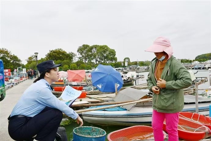 日前,蘇州工業(yè)園區(qū)公安分局陽澄湖半島派出所民警至轄區(qū)陽澄湖漁船碼頭開展走訪宣傳,同步進(jìn)行防范宣傳。