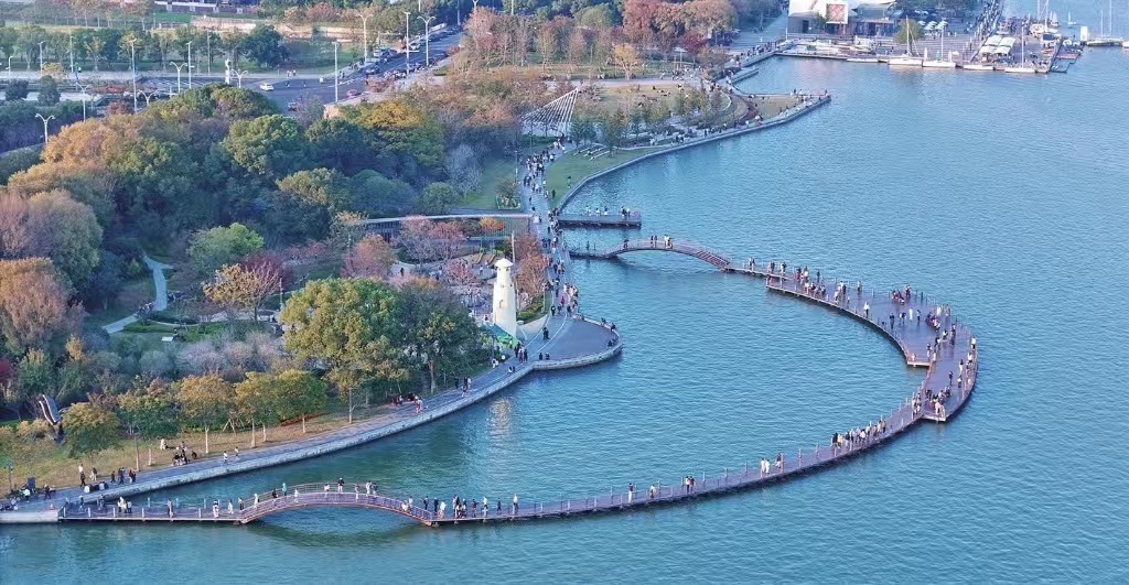 昨天,園區金雞湖湖濱步道上,推著嬰兒車的家長、牽著手的情侶、不知疲倦的孩子……匯成了一幅周末休閑圖景。