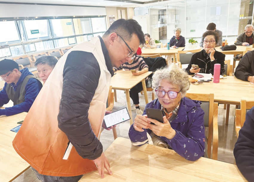 技術進步的紅利要讓百姓共享,智慧治理同樣要有溫度。針對數字化轉型過程中易被忽視的老年人群體,街道及多個社區積極開展各類服務項目,幫助老年人接軌“智慧生活”。比如,“智多星”項目從包容性治理理念出發,構建老年智能學習平臺,將“關懷模式”“長輩模式”融入日常服務,充分考慮老年群體的特殊需求。