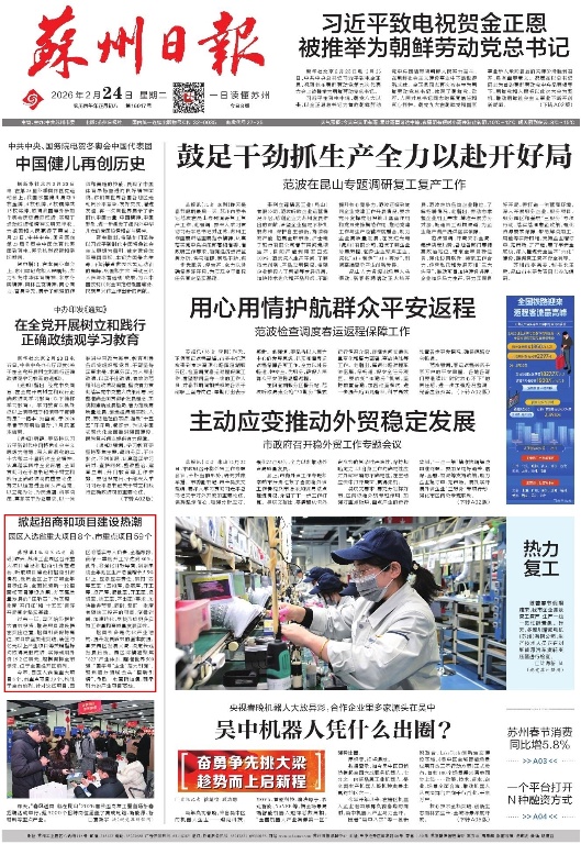 《蘇州日?qǐng)?bào)》2026年02月24日A01版