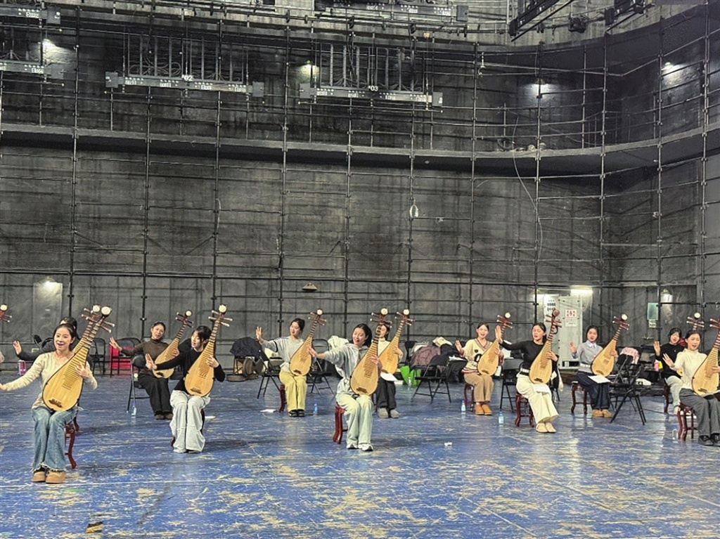 1月8日接到央視邀請后,在蘇州市委宣傳部、市文廣旅局的統(tǒng)籌安排下,蘇州評彈學(xué)校迅速行動(dòng):遴選出20名專業(yè)扎實(shí)、舞臺表現(xiàn)力強(qiáng)的學(xué)生,協(xié)調(diào)期末學(xué)業(yè)安排,選派2名經(jīng)驗(yàn)豐富的教師全程帶隊(duì)指導(dǎo)。1月11日,師生團(tuán)隊(duì)?wèi)汛е鴮λ囆g(shù)的熱忱與使命赴京,開啟了一個(gè)多月的高強(qiáng)度排練。