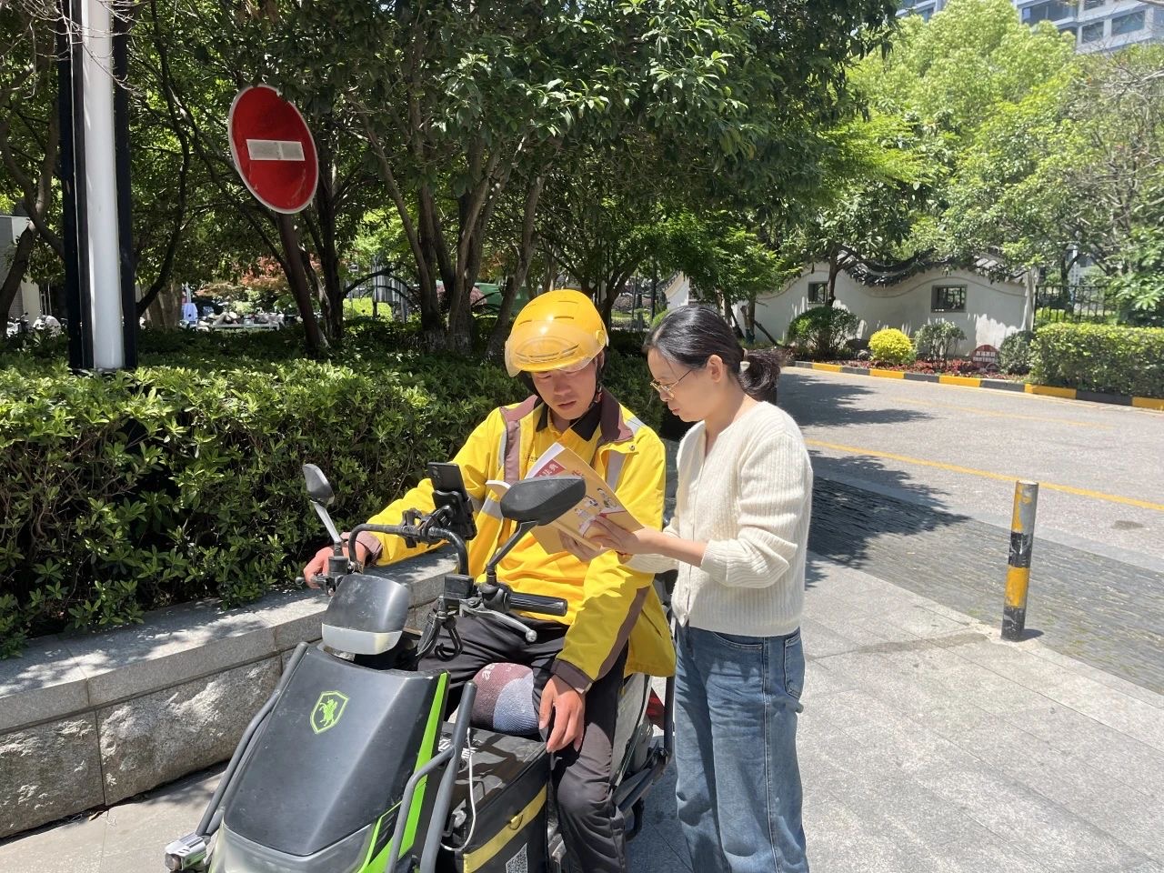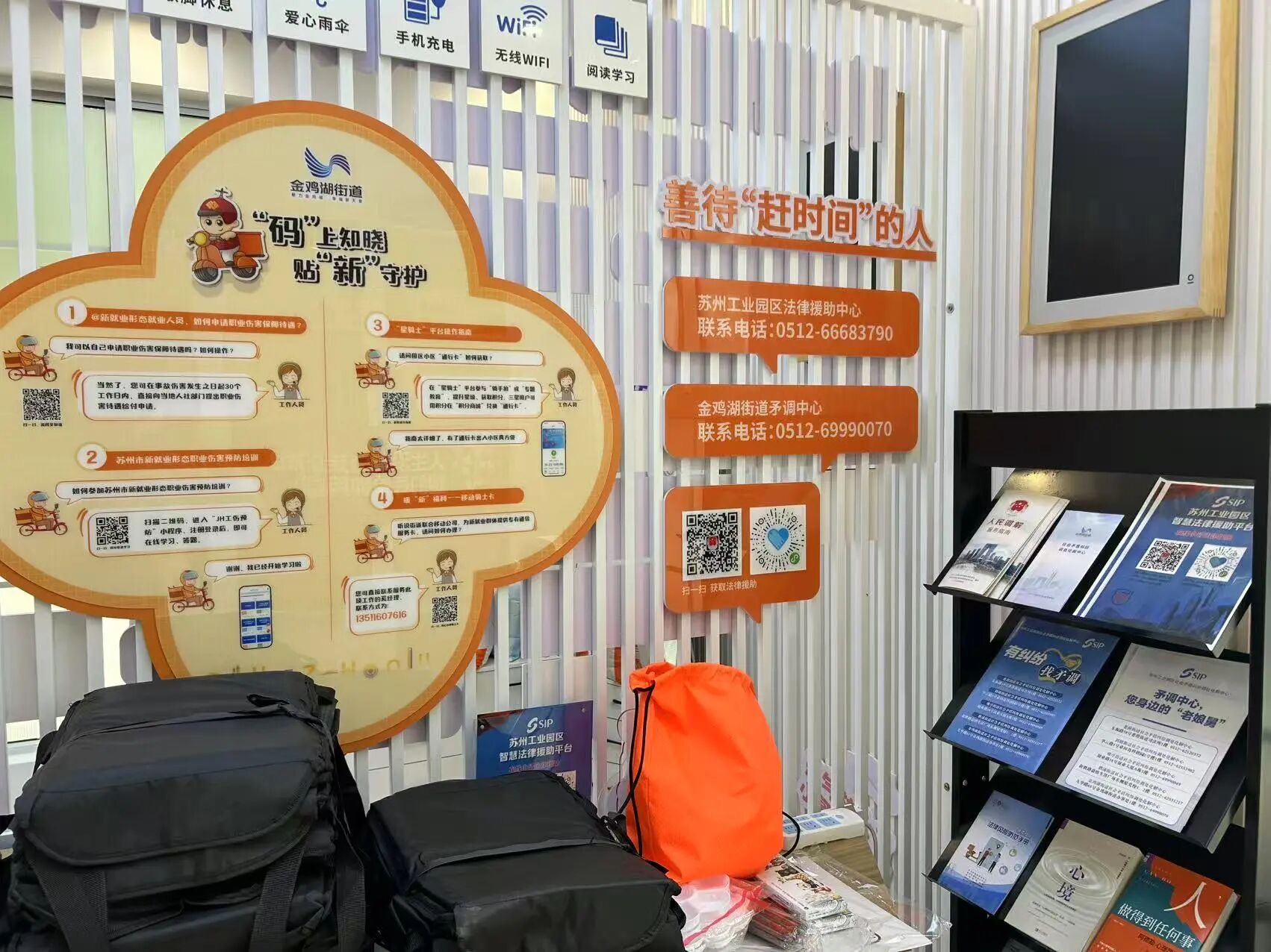 街道以需求為導(dǎo)向,推動(dòng)普法從“單向”向“雙向”轉(zhuǎn)型。結(jié)合本年度農(nóng)民工學(xué)法活動(dòng)周、民法典宣傳月、安全生產(chǎn)月、暑期送清涼等重要節(jié)點(diǎn),發(fā)動(dòng)社區(qū)開展集中普法宣傳6批次,累計(jì)發(fā)放普法資料2000余份。通過(guò)微信群、公眾號(hào)等線上渠道,推送街道自制《新就業(yè)形態(tài)勞動(dòng)者權(quán)益保護(hù)普法手冊(cè)》、調(diào)解宣傳案例等實(shí)用信息,不斷豐富學(xué)法途徑。同時(shí),鼓勵(lì)騎手化身“流動(dòng)普法員”,通過(guò)在外賣箱上貼法治標(biāo)語(yǔ)等形式,營(yíng)造“流動(dòng)”普法氛圍。此外,依托“城市新客廳”及太平金融大廈“星”騎士加油站等暖“新”驛站增設(shè)“學(xué)法圖書角”,擺放《人民調(diào)解服務(wù)指南》《外賣行業(yè)法律風(fēng)險(xiǎn)防范手冊(cè)》等材料,供新就業(yè)群體在工作休息之余隨手翻閱、隨時(shí)取用。