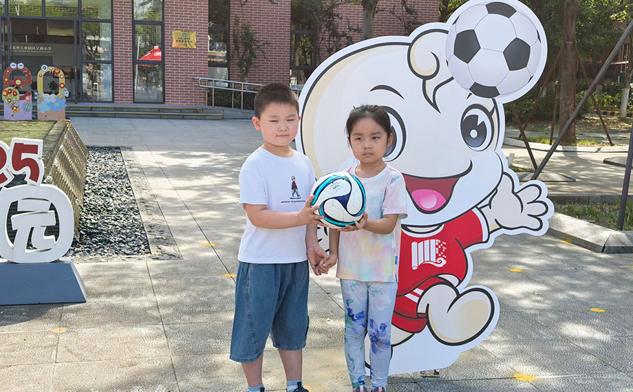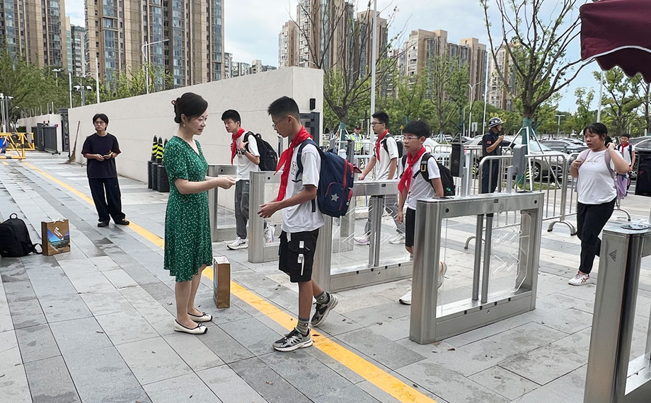 七年級新生的入校儀式則與今夏熱門話題“蘇超”緊密相關。在校園西側,蘇超十三城的球衣迎風舞動,學生們一邊回憶著賽事的精彩,一邊與喜歡球隊的球衣合影。星灣學校副校長杜紅芳介紹:“學校希望通過這種安排,讓孩子們感受運動員團結奮進、努力拼搏的精神,成為有擔當、有勇氣、有信念、有信念的星灣學子。”