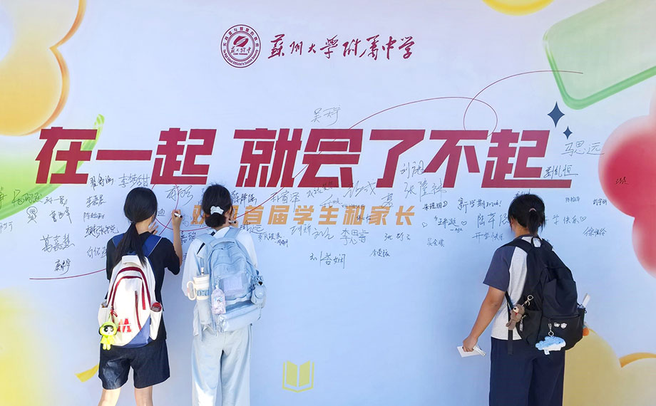 今年,蘇大附中勝浦路校區建成投用,學校提前迎新、軍訓,讓學子盡快融入校園。開學之際,學校創新推出首屆新生名錄展示板,同時讓到校學生及家長在空白簽名板上一起留名,合力發出“在一起,就會了不起”的宣言。同時,校園里的迎新條幅、創意打卡,小徑旁的勵志話語、溫馨提示,班級內的破冰互動等等,也助力每一位學子從陌生走向熟悉。
