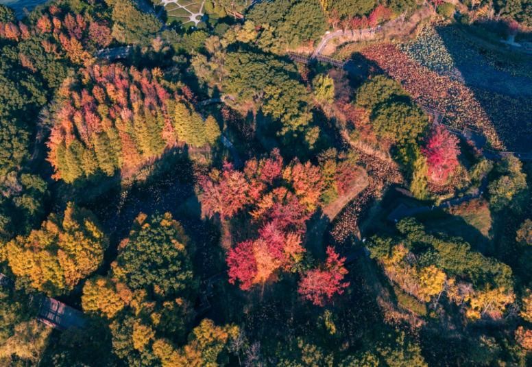 寒風(fēng)輕拂,秋冬意濃。隨著季節(jié)更迭,一幅幅以紅楓、銀杏、水杉為筆觸的斑斕畫卷徐徐展開,在摩登樓宇與自然湖岸之間,勾勒出園區(qū)層次豐盈、詩(shī)意流動(dòng)的秋冬盛景。