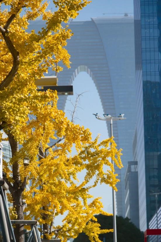 驅(qū)車或漫步這條城市中軸線,兩側(cè)的高樓構(gòu)成摩登的天際線,銀杏的金黃主旋律為這幅都市畫卷點(diǎn)上了最明亮的季節(jié)色彩。